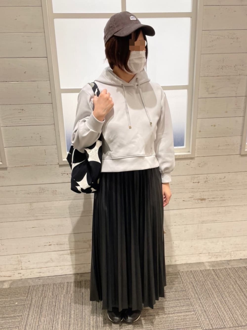 cohinaの丈感がやっぱり好き! レザーのプリーツスカートはなめらかな生地だから着やすい(^^) ウエストもゴムだし紐もついてて調節可能なのも嬉しい♪ 低身長でも丈長め好きだったらちょうど良い感じー!
