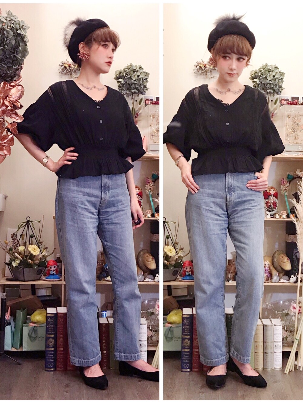 おはよう御座います。 3日ぶりの投稿です。今日のテーマは黒となります。 あまり秋がない台湾にはこの時期に入っても五分袖は全然いけます。ただし頭の防寒はきっちりしておかないと(笑笑) ハイウェストのデニムを合わせる為丈が短く、また腰にはゴム入りのデザインとなるからゆったり過ぎないようなコーディネートを仕上げました( ^ω^ )