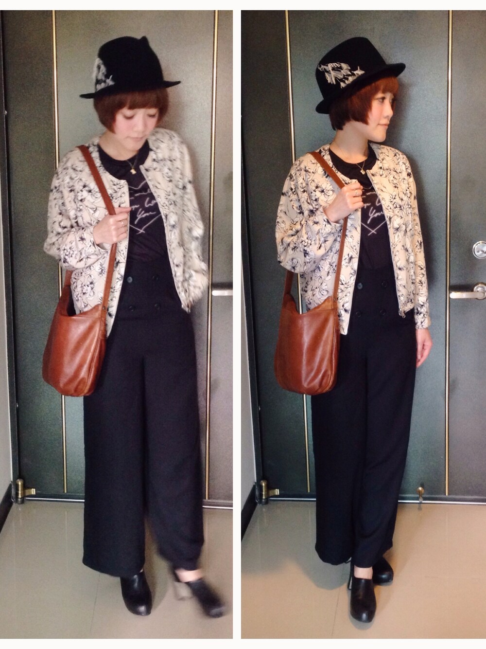 またまたあったかい一日でした🌞 ハット CA4LA ジャケット KBF アウター EMODA トップス EMODA サロペット MOUSSY 靴 ALL BLACK 鞄 古着
