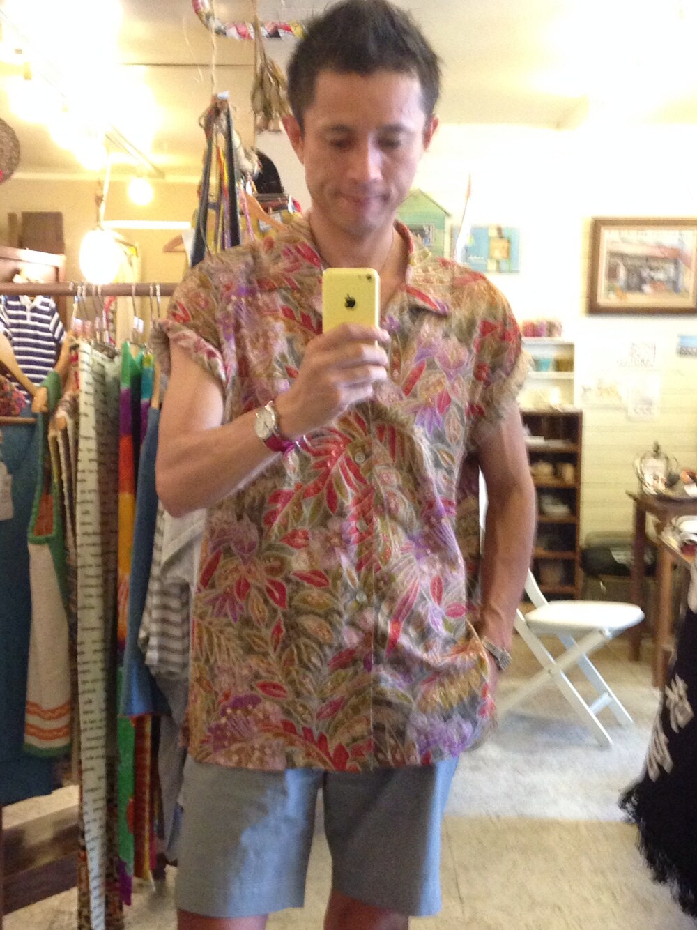 24年前に母に仕立てて貰ったイタリアの生地のアロハ。 当時はビックサイズ過ぎてあまり着れなかったけど、今日復活! 今夜は三津浜の花火大会に行きます。