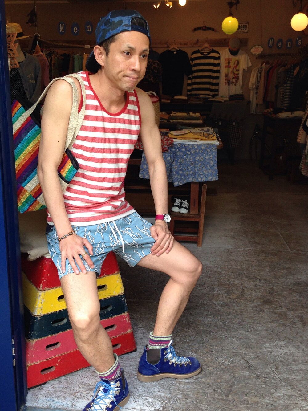 Naoyaのタンクトップ「ヘリンボーンジャガード ボーダータンクトップ」を使ったコーディネート