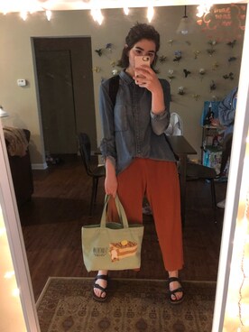 「UNIQLO(ユニクロ)のアイテム(その他パンツ、オレンジ系)」を使った、birdieさん(163cm)の春コーディネート
