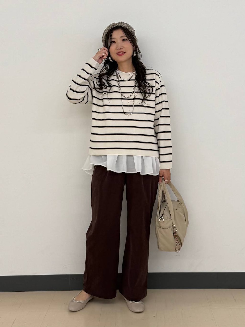 いつもご覧いただきありがとうございます 【トップス】 ニット[Mサイズ] カットソーのようなボーダーニット サイズはいつもと同じでOK 表面がつるんとして綺麗みえします ピッチが細めでカジュアルすぎません 配色がオシャレで旬見えします ロンT[Mサイズ] 裾がペプラムやシャツになっているロンT サイズはいつもと同じでOK 薄手で重ね着使いにピッタリ 【ボトムス】Mサイズ コーデュロイパンツです サイズはいつもと同じでOK 太すぎず細すぎないストレートシルエット ウエストゴムで楽ちんな履き心地 うねが細めでカジュアルすぎません 柔らかい生地で軽いです 肌触りもいいので着心地◎ 応援してもらえると励みにもなるので、フォローして頂けると嬉しいです♡⃛ Instagramもやっています♡ 相談、質問などお気軽にどうぞ。 こちらもフォローお願い致します⟡.·*.