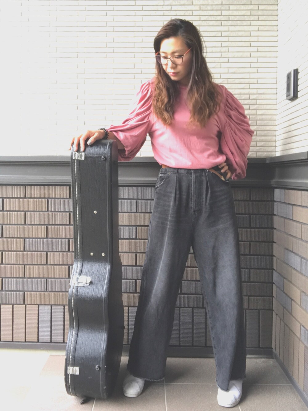 子供預けてギターレッスン🎸 産休中だからできること☺️ 産後ハゲから生えてきた前髪は ワックスでまとめて 今日は帽子なし🙅♀️ ジーンズはusedのハイウェストバギー🙏 脚が太くてバギー感が出ない😂