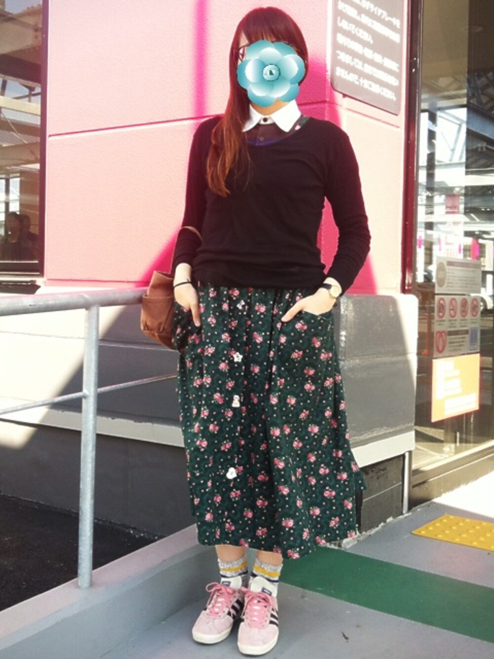緑のワンピース:アメリカused ロンT:TOGA シューズ:adidas(used) バッグ:ドーナツプラント&ハグオーワーコラボ ワンピースを重ね着しました。