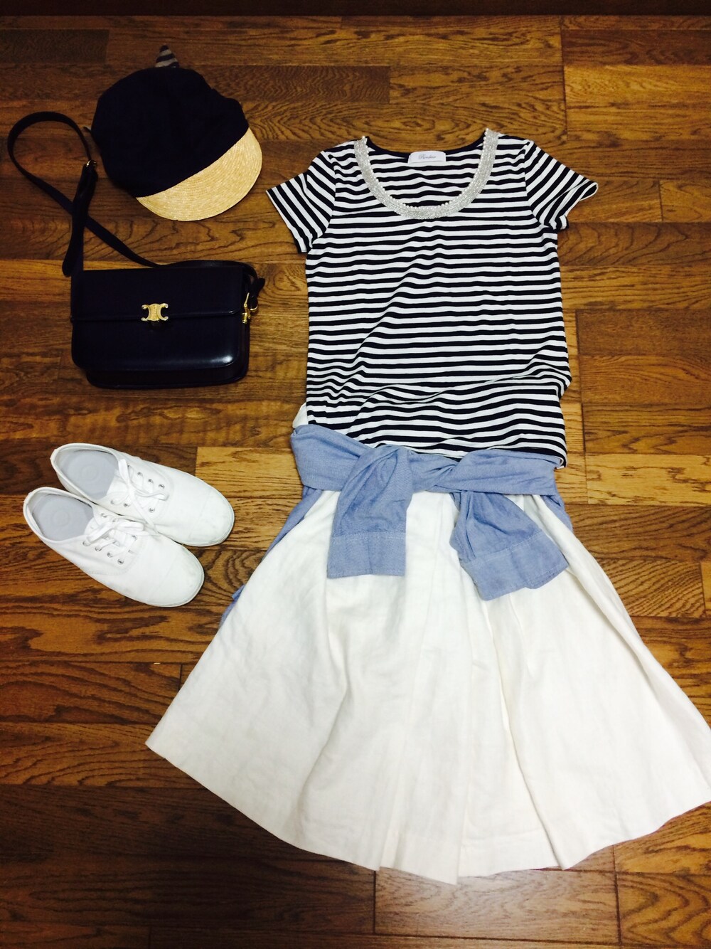 Tシャツ ブランド不明(母のおさがり) スニーカー 無印良品 明日のコーデ考え中… アドバイス受付中で〜す💁