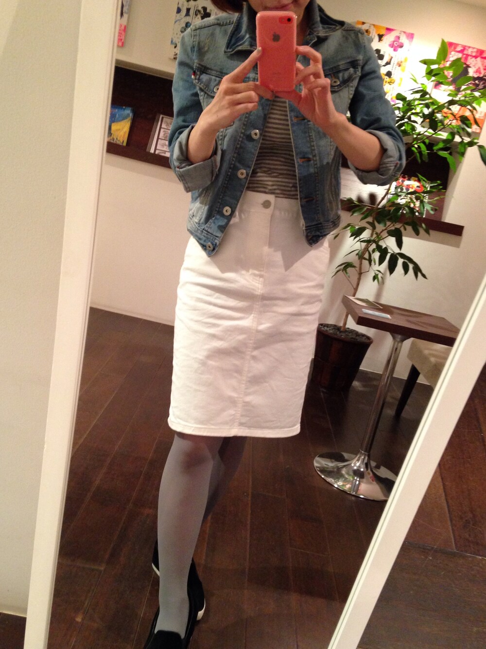 Gジャン:GU トップス:ルカ スカート:イエナ 靴下:靴下屋 靴:キャセリーニ