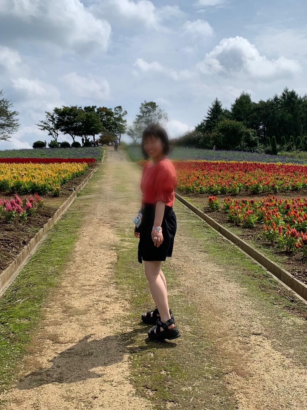 那須フラワーワールドで📸 赤のトップスで映え狙い ISSEI MIYAKEの時計は憧れの人とお揃いにしちゃいました〜👾 アクセサリーとしても付けてます⌚️