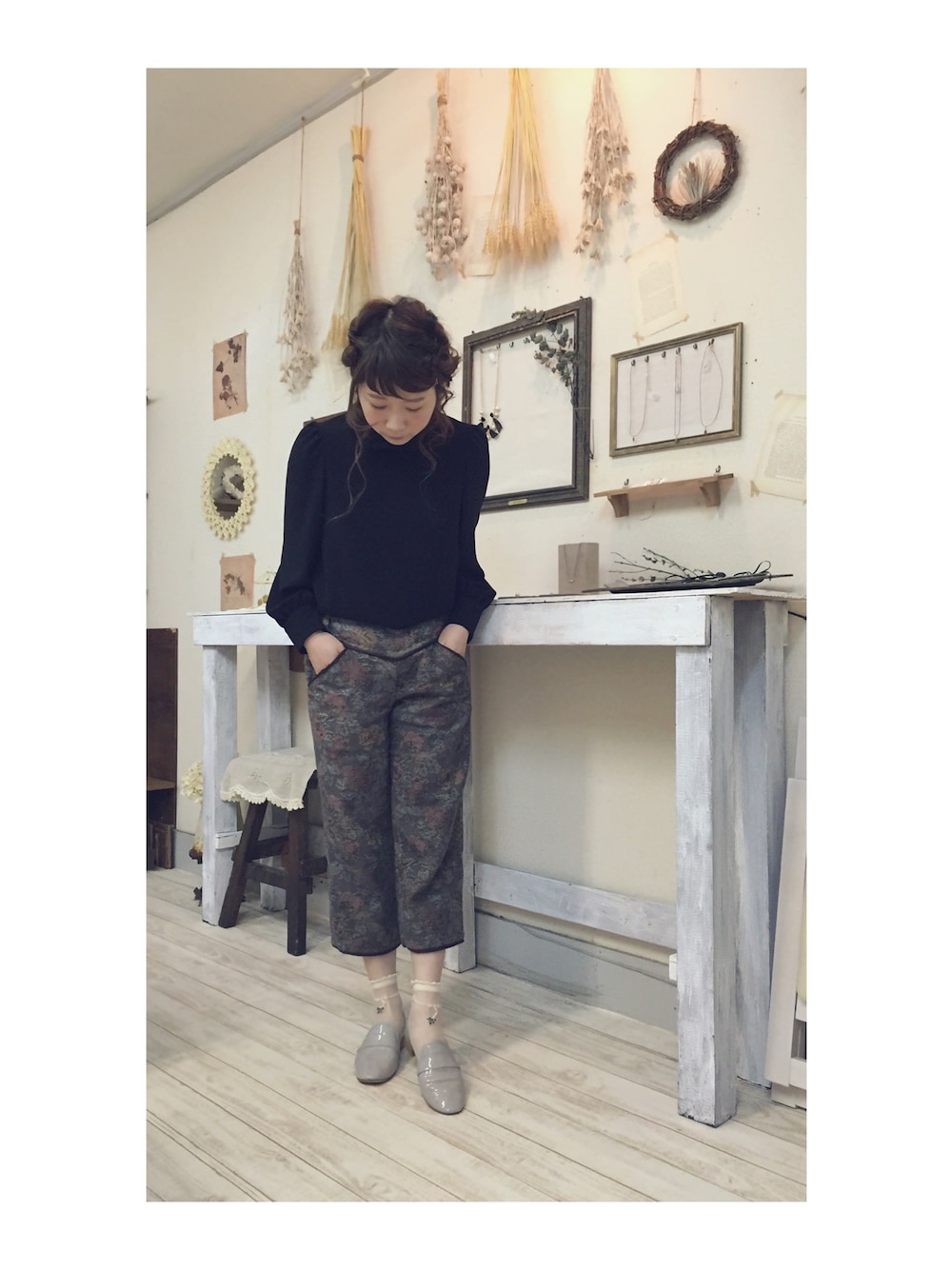パリのオペラ本店で購入した repettoの MICHAEL を初おろし〜✨👏💕 小窓はグレーになってますが、カラーは Lama で、ベージュなのです🐏✨ motherのゴブラン織りパンツと、小さなフリル刺繍が気に入ってるシースルーソックスと合わせて💫💫