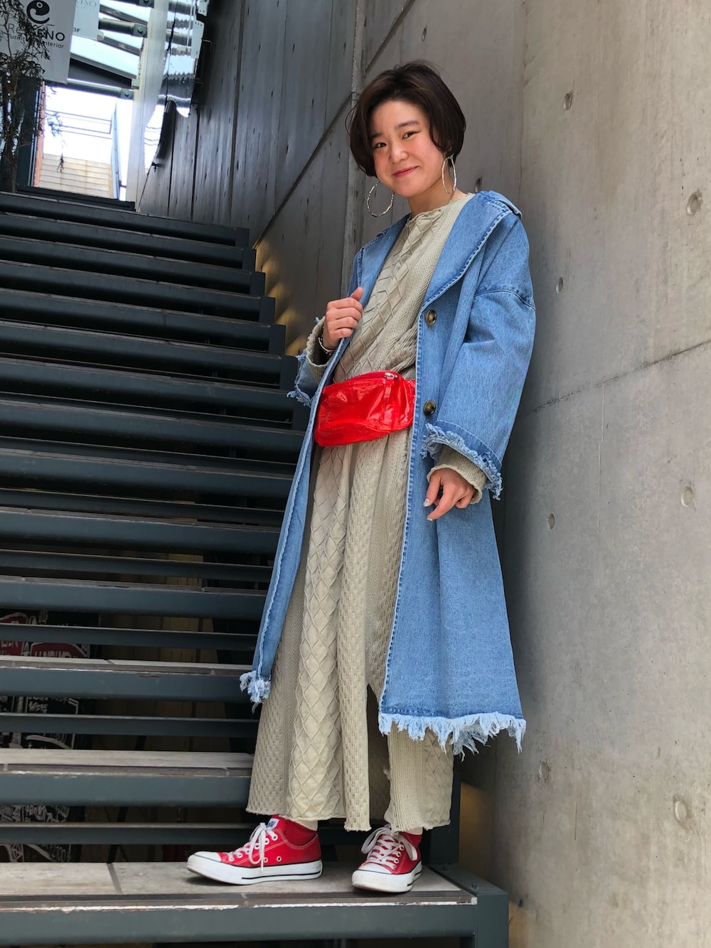 ウエストバッグとコンバースの色合わせがポイント!デニムコートもおすすめです🤘