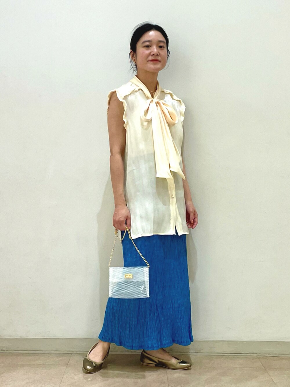 新作ブラウスです。タイトスカートと合わせてIラインを強調しました😚