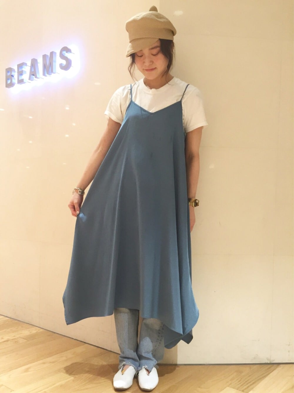 yamashita aiのワンピース「Ray BEAMS / サテン ロング キャミ ワンピース」を使ったコーディネート