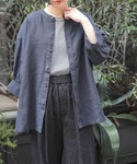 肘が隠れる袖丈のブラウスです。 お袖はふわっとしていてデザイン性があります。 腕を出したくない方にもオススメです。 羽織りとしても使えるので着回しが効きます。 デニムは綿麻の柔らかいデニムを合わせました。 ウエストはゴムで楽に履けます。 夏のデニムは暑いイメージですがこちらは涼しく楽にはいて頂けます。