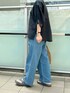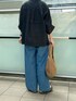 肘が隠れる袖丈のブラウスです。 お袖はふわっとしていてデザイン性があります。 腕を出したくない方にもオススメです。 羽織りとしても使えるので着回しが効きます。 デニムは綿麻の柔らかいデニムを合わせました。 ウエストはゴムで楽に履けます。 夏のデニムは暑いイメージですがこちらは涼しく楽にはいて頂けます。