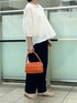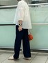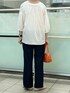 ふわっとしたラインがかわいいブラウスです。 透け感のある生地で軽い着心地です。 お袖が長めなので二の腕を出したくない方にもおすすめです。 生地がすごくかわいいです! ボトムはデニムを合わせました。 太すぎないスッキリとしたラインのデニムです。 柔らかくて履き心地もいいですよ。