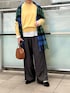 すぐに完売してしまったフリルブラウスが再入荷しました。 フリルが小さくて大人っぽく着られるブラウスです。 柔らかい生地感なのでニットの下にも重ねやすく胸元がピンタックになっているのでカーディガン合わせも◎ ニットはゆったりしすぎていないのできちんと感もあります。 優しいイエローがかわいいですね。 イエローと相性のいいグレーのパンツを合わせました。 サラッとした生地感のワイドパンツです。 チェックのストールをポイントにしました。