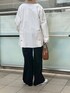 サロペットやジャンパースカートのインナーにもおすすめのニットです。 コンパクトなのでスッキリと着られます。 毛羽立ちがなくキレイな表面感なのねオフィススタイルにもオススメです。 今回はカジュアルにコーデュロイサロペットと合わせました。 だぼっとしすぎていなくて子供っぽくなりません。 アウターは春にも使えるバブアーを合わせました。人とかぶりにくいバブアーです。 白は合わせる色を選ばないので何に羽織ってもかっこよく決まります^ ^