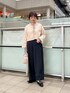 リボンがポイントのカーディガンです。 前後どちらでも着られます。 丈が短めなのでワイドパンツとの相性◎ ベロアもトレンド感がありひとつ取り入れるだけで今年らしいコーディネートに。 ボトムは履き心地のいい9分丈パンツです。 落ち感のある柔らかい生地でカジュアルにもお仕事着にも使える万能なアイテムです。