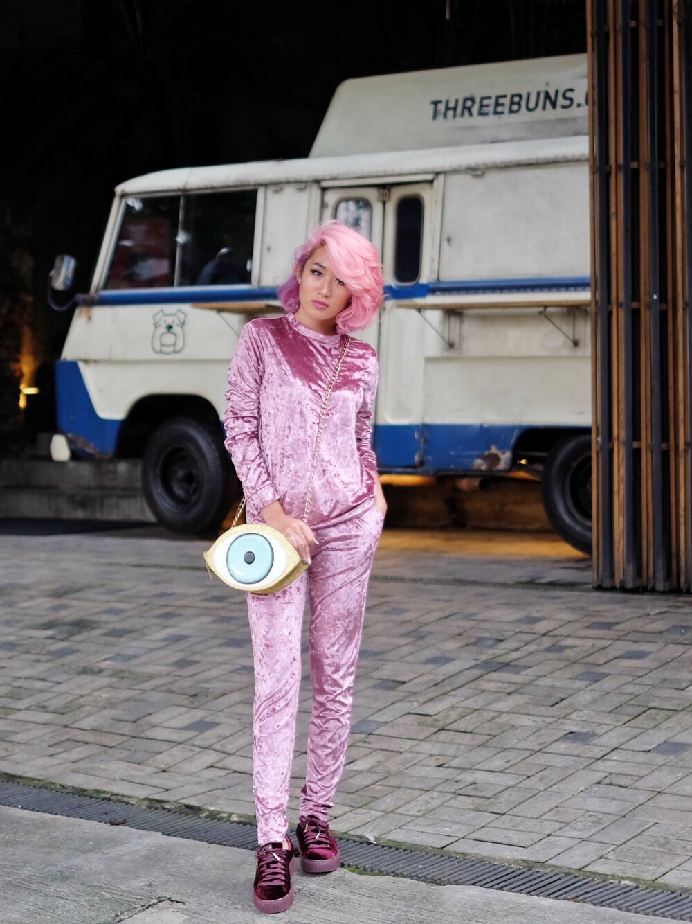 aiinessのクラッチバッグ「all eyes on you clutch」を使ったコーディネート