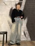 こげなコーデがいちばん落ち着きますん🥰 ☝️トップスFショート丈ボリュームのあるボトムスにぐーぐぐー!!! ☝️デニムはSも入るがしかしずるっと希望でM!!! たくさん着回してるお🥣✨ ほかのスタイリングもうきうきwatching🌈💕