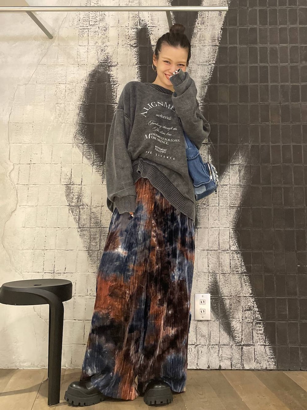 ゆるずる😇ずるずる ☝️トップスFちくレベルZEROおちりすっぽり安心着丈!!! ☝️ボトムスFウエストは幸せ呼ぶゴムひゃほーーーい!!! たくさん着回してるお🥣✨ ほかのスタイリングもうきうきwatching🌈💕