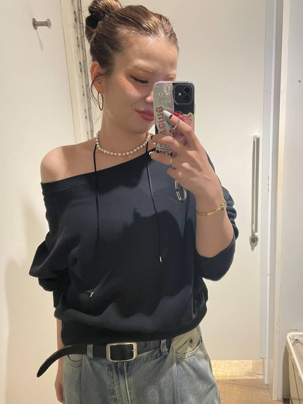 リアルバイデスバイ🍼 ☝️トップスFボートネックもワンショルも出来るワン🐶 ☝️デニムはSも入るがしかしずるっと希望でM!!! たくさん着回してるお🥣✨ ほかのスタイリングもうきうきwatching🌈💕