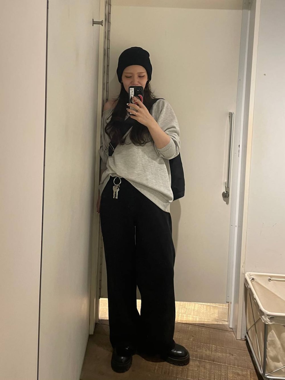 AI_YOSHIHARA(JEANASIS アミュエスト博多店)のスウェット「【選べる着丈】オフショルラメミニウラケプルオーバー/323006」を使ったコーディネート