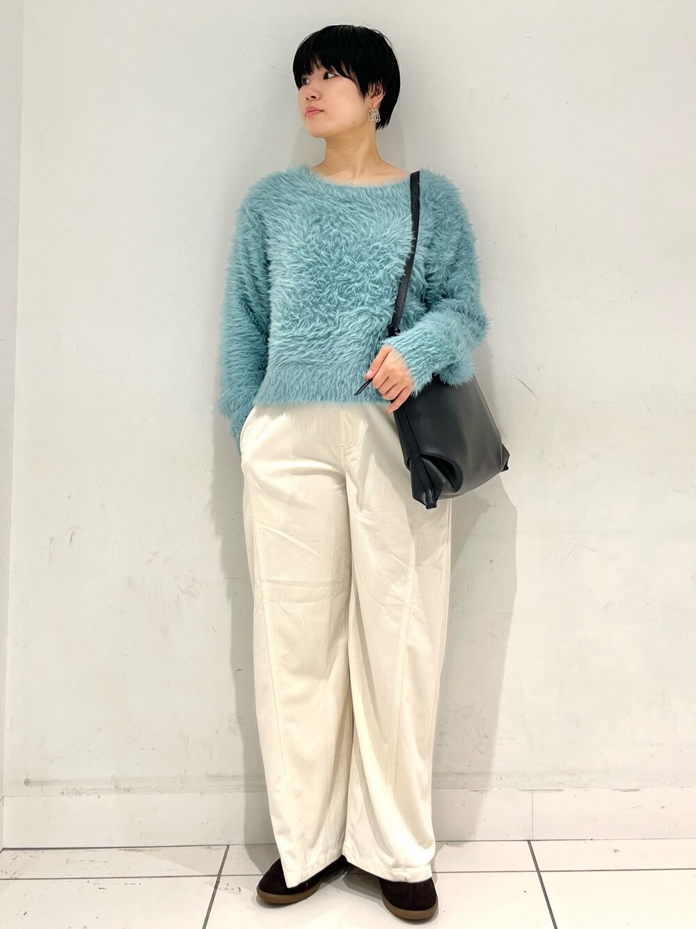 ご覧頂きありがとうございます!! 新作のシャギーセーターを使ったコーデ🍄🟫 毛足が長いのでチクチクせずに着れます(* 'ᵕ' )☆ キレイめもカジュアルもいけるのでこの冬大活躍間違いなしです🍐