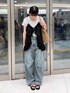 ご覧いただきありがとうございます! レイアードアイテムで一癖あるコーデにしました! シンプルなデニムにレースを合わせています。 夏のお出かけにぴったりです☆♪