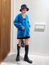 カーディガン💙×ショートパンツ🖤