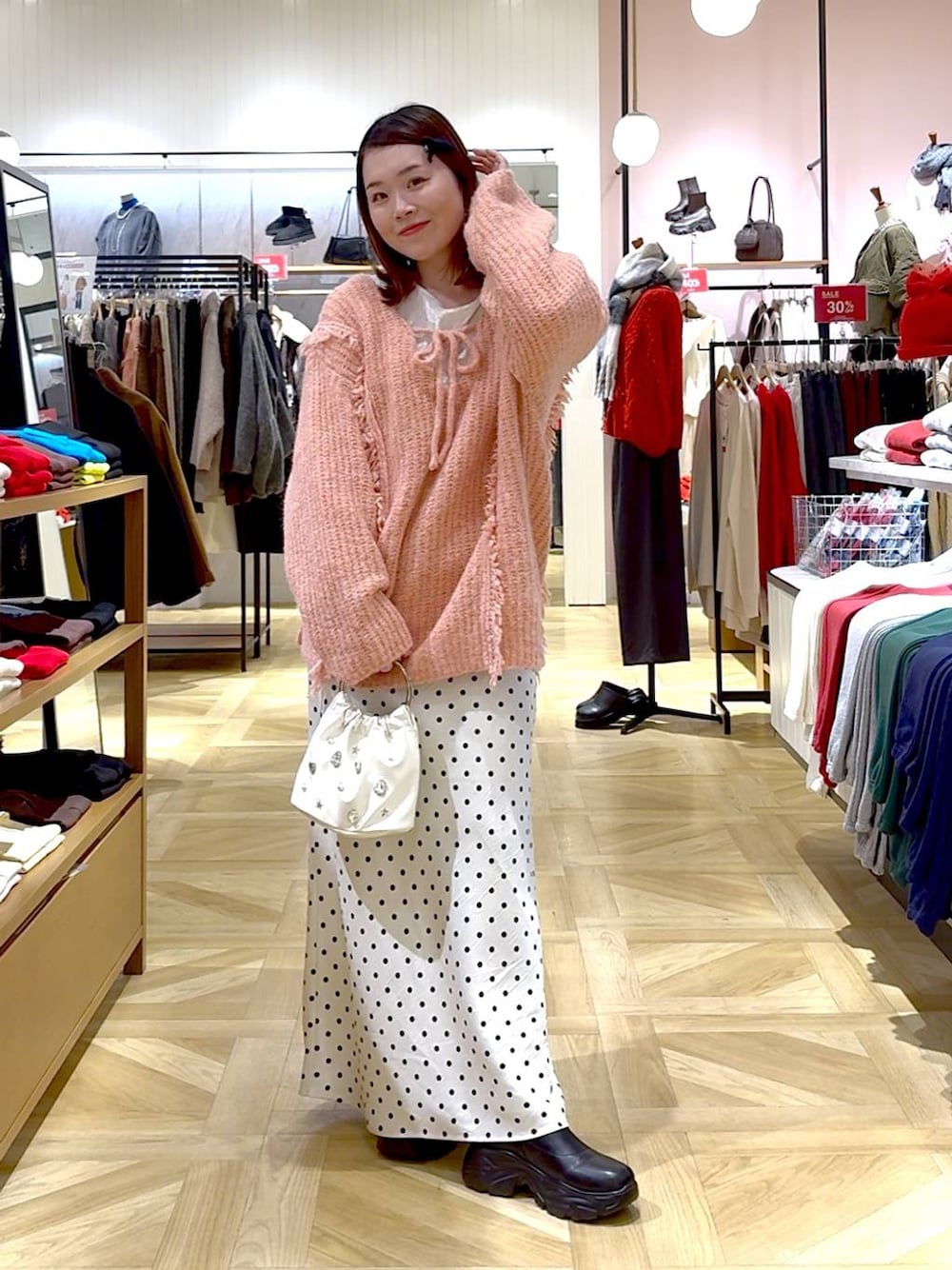 ⭐各アイテムのおすすめポイント  ̄ ̄ ̄ ̄ ̄ ̄ ̄ ̄ ̄ ̄ ̄ ̄ ̄ ̄ ̄ ̄ ̄ 【トップス】freeサイズ 前後2WAYで着用いただけます◎ 腰周りをカバーしてくれる長さなので安心して着られます!♡♡ ウールが入っていて暖かいので真冬でも大活躍できます🤭 【ボトムス】Mサイズ 適度な厚みとツヤがあるサテン生地のセミフレアスカート ウエストはオールゴムなので本当に履きやすい‼️✨ 程よく落ち感がでてキレイめに着れますよ~✊🏻💕 【シューズ】Lサイズ 柔らかく、スニーカー感覚で履けるので履き心地抜群です◎ つま先裏には抗菌防臭効果機能付きです✨️ 絶対1点持っておきたいブーツです☝🏻