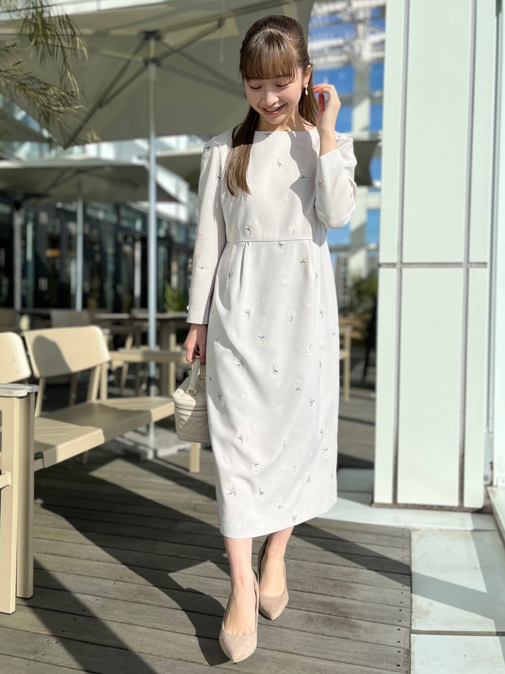 お花の刺繍が可愛いワンピース。 袖山とウエスト部分のタックが、体型を程よくカバーしてくれます♪