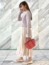 aika/154cm/骨格ウェーブ 【トップス】 あみ柄の透け感が春らしい一枚! さらりとした肌あたりで、これからの季節にぴったりのアイテムです。 【スカート】 少し綺麗めなスカート合わせでカジュアルガーリーなコーデに仕上げました。 ウエスト総ゴムで楽ちんに着られます。