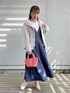 aika/154cm/骨格ウェーブ 【マンパ】 ウエストドロストをキュッと絞ると、スタイルアップ効果が期待できます! 【トップス】 襟元のスカラップが華やかな一枚。 これからの季節に重宝すること間違いなしです! 【ジャンスカ】 フレア分が上品なアイテム♪ デニム調の素材なので、軽く着られます◎