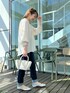 aika/154cm/骨格ウェーブ 【ブラウス】 前後差のあるデザインで、お尻をすっきりカバー。 低身長の私は、お袖を少しまくり、すっきり見えるように着用しました。 【デニム】 クチュールブローチらしいパール付きのデニム。 スキニーですっきりと合わせ、ブラウスとのバランスを取りました。