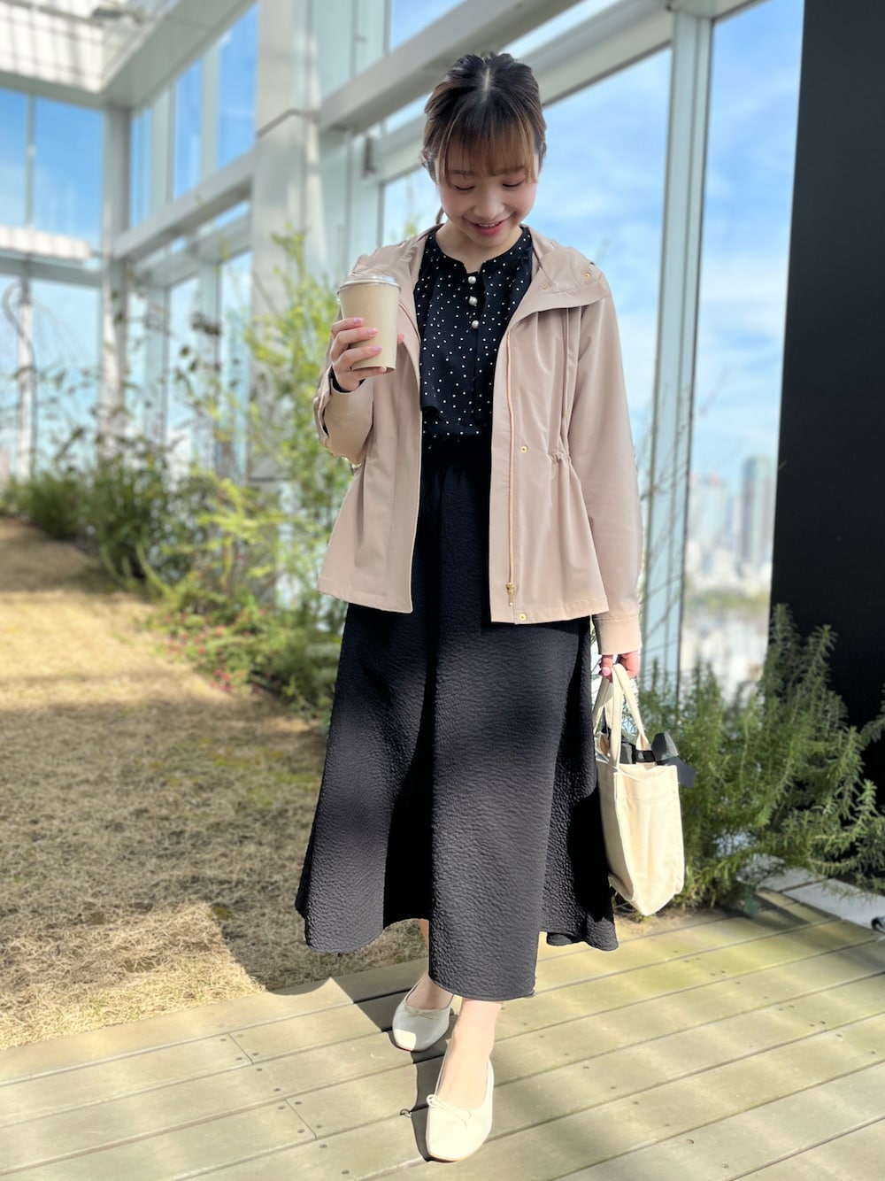 aika/154cm/骨格ウェーブ 【マンパ】 可愛らしいピンクのマンパは、コーデを一気に春らしくしてくれます。 ウエスト位置を高くマークできるのもポイント。 【ブラウス】 ドット柄が華やかな一枚。 パール付きで上品さも忘れません。 【スカート】 流行りのジャガードスカート。 ポコポコとしたお花柄が大人可愛いデザインです。
