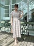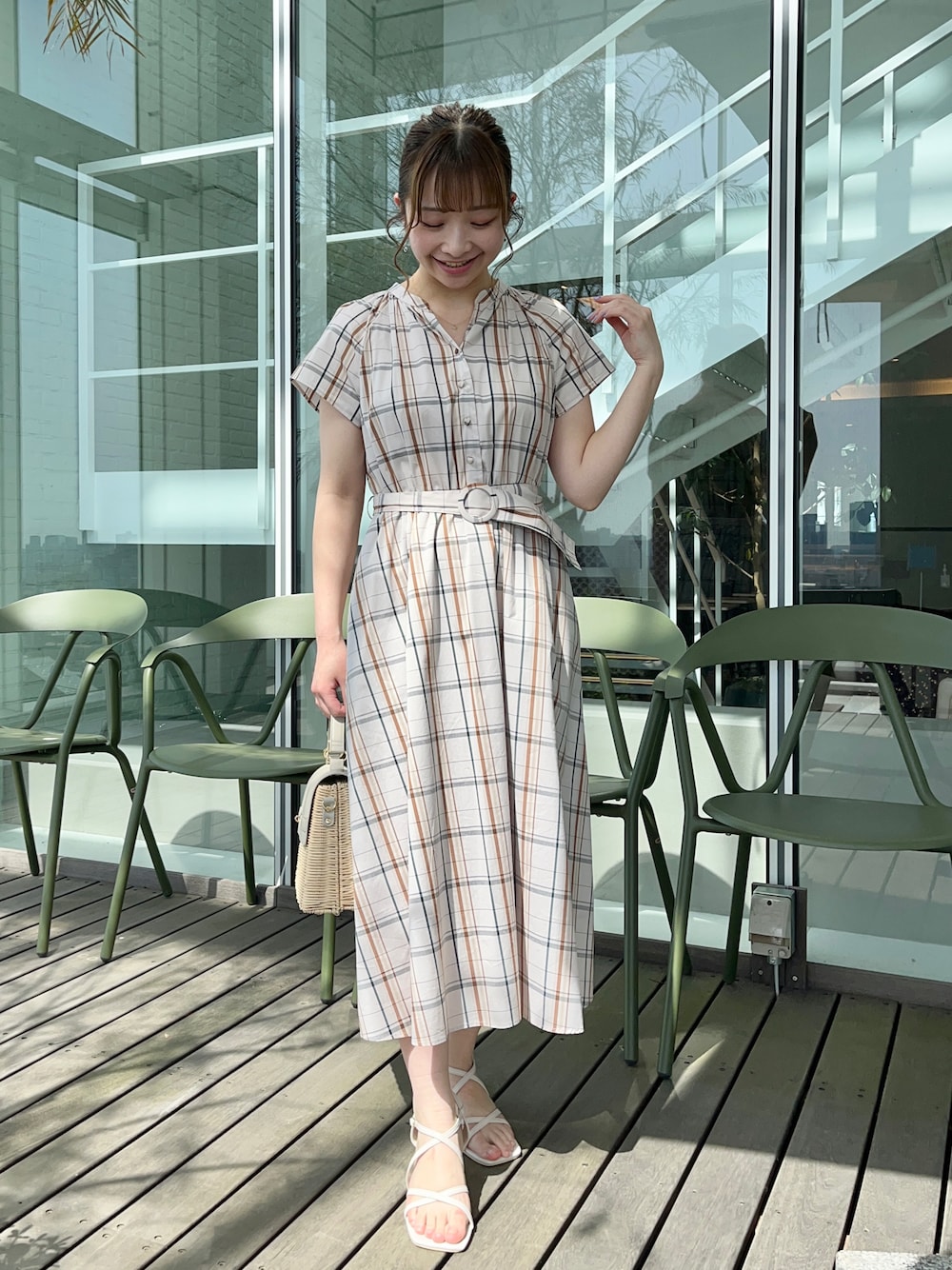 aika/154cm/骨格ウェーブ 【ワンピース】 大きなチェック柄が目を引く一枚♪ フレンチスリーブで腕周りがすっきり見えます。