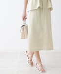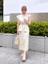 aika/154cm/骨格ウェーブ 【トップス】 ウエスト位置を高く見せてくれるブラウス。 キレイなシルエットで、スタイルアップして着られます。 【スカート】 細身のシルエットですっきり。 身体のラインを拾いすぎず、キレイに着られます。