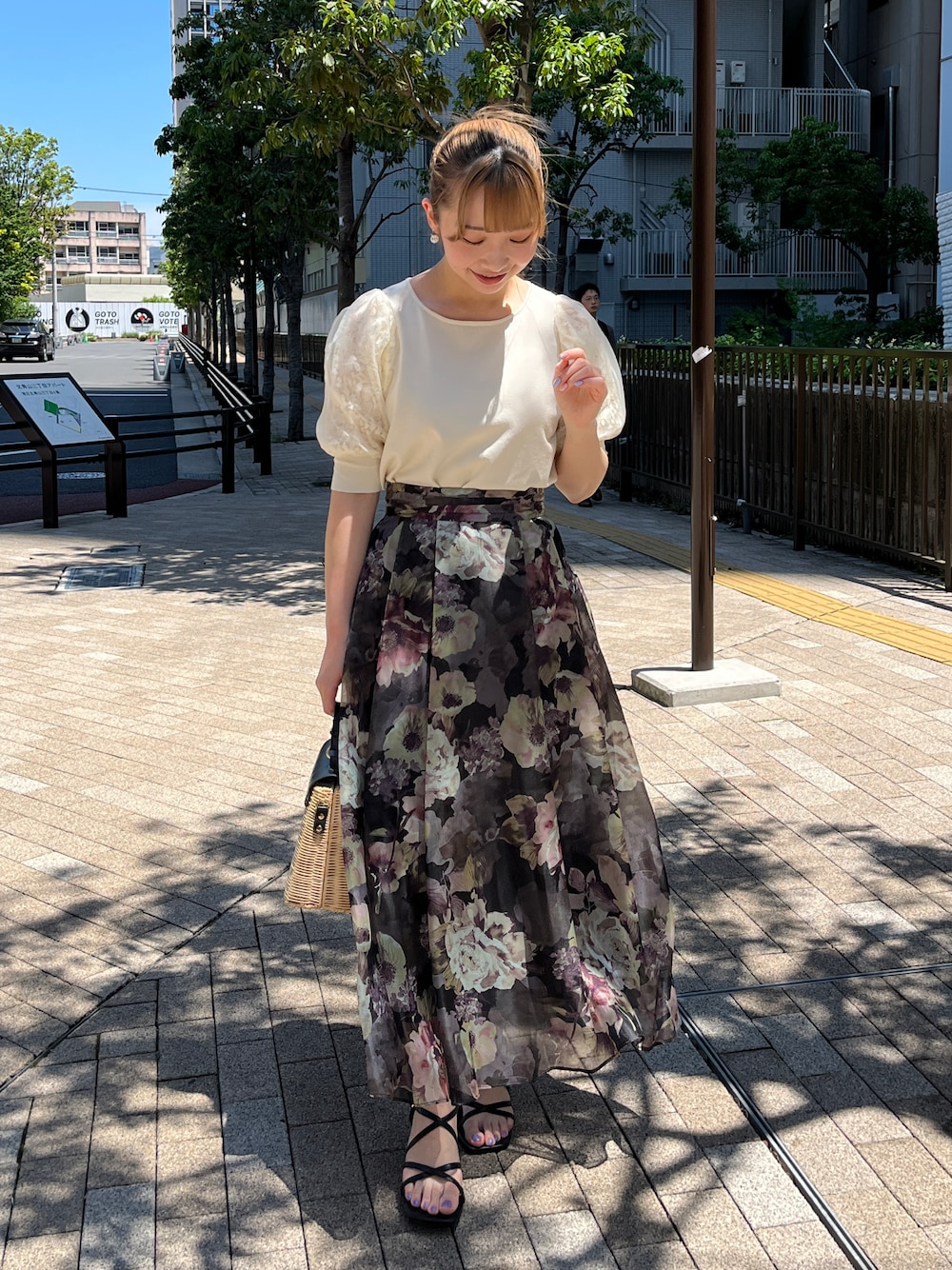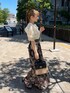 aika / 154cm / 骨格ウェーブ 【トップス】 お袖がレースとオーガンジーを重ねた仕様。 程よく透け感があります。 バックスタイルもパールで華やか♪ 【スカート】 大人気アイテム! シアー感と光沢感が上品な一枚です。