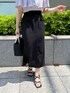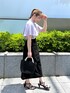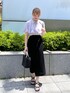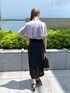 aika / 154cm / 骨格ウェーブ 【ブラウス】 ケープ風のデザインで、ナチュラルに二の腕をカバーしてくれます。 【スカート】 細身のシルエットながら、身体のラインを拾いにくいデザインです。