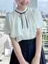 aika / 154cm / 骨格ウェーブ 【ブラウス】 ケープ風のデザインで、二の腕をナチュラルにカバーしてくれます。 【スカート】 丈が比較的短めなので、低身長さんでもすっきり着られます♪