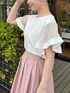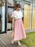 aika / 154cm / 骨格ウェーブ 【トップス】 肌触りの良いTシャツ素材。 お袖のデザインが可愛いポイント。 【スカート】 ウエストがギャザーとそうでない部分があり、すっきり見えします。