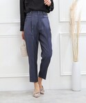 aika / 154cm / 骨格ウェーブ 【ブラウス】 前後2wayで着られるアイテム。 お袖部分がほんのり透ける素材になっていて、軽い印象で着られます。 【パンツ】 デニム調の素材で、軽く涼しく着られます。 皺にもなりづらく、優秀な一枚です。