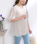 aika / 154cm / 骨格ウェーブ 【チュニック】 両サイドのチュール切り替えが、フェミニンポイント。 ジョーゼット素材で、伸縮性のある一枚です。 【パンツ】 定番のストレッチパンツ。 裾のパールがキレイめポイント。