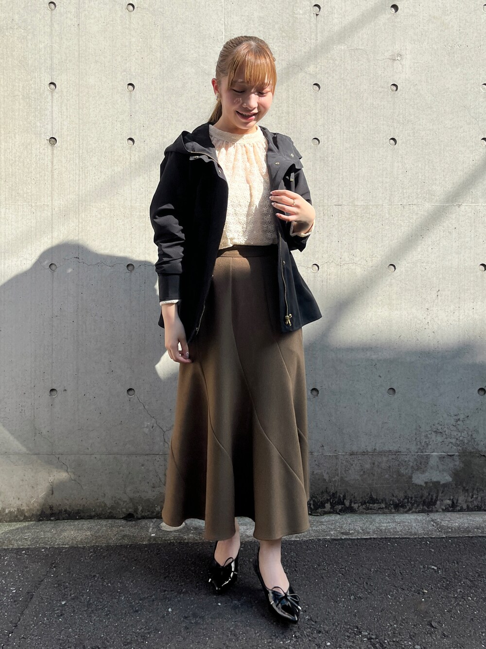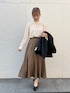 【マンパ】 ウエストドロストをキュッと絞って、綺麗なシルエットに。 スカート合わせでももったりせず着られます。 【トップス】 レースから程よく肌が透けます。 季節の変わり目に丁度良い一枚◎ 【スカート】 膝下のフレア分たっぷりで、シルエットが綺麗に出ます。 シワになりにくい素材なので、お手入れも楽ちん!