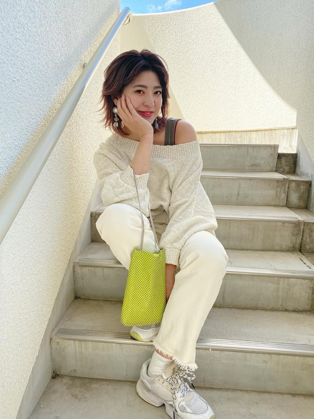 AIKA(JEANASIS姫路ピオレ店)のニット/セーター「5Gスラブオフショルニット/829766」を使ったコーディネート