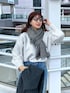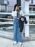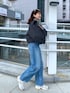 大人カジュアルコーデ♪ アウターからちらっと見える キラキラニットがポイントに なってオシャレ見え◎ デニムはハイウエストで 脚長効果もありながら ハクプリントでオシャレ見えも さりげなく◎ アウターはものすごく軽く 厚手すぎないけど着込めるので 温度調節も万能! スタンドカラーが可愛い♪