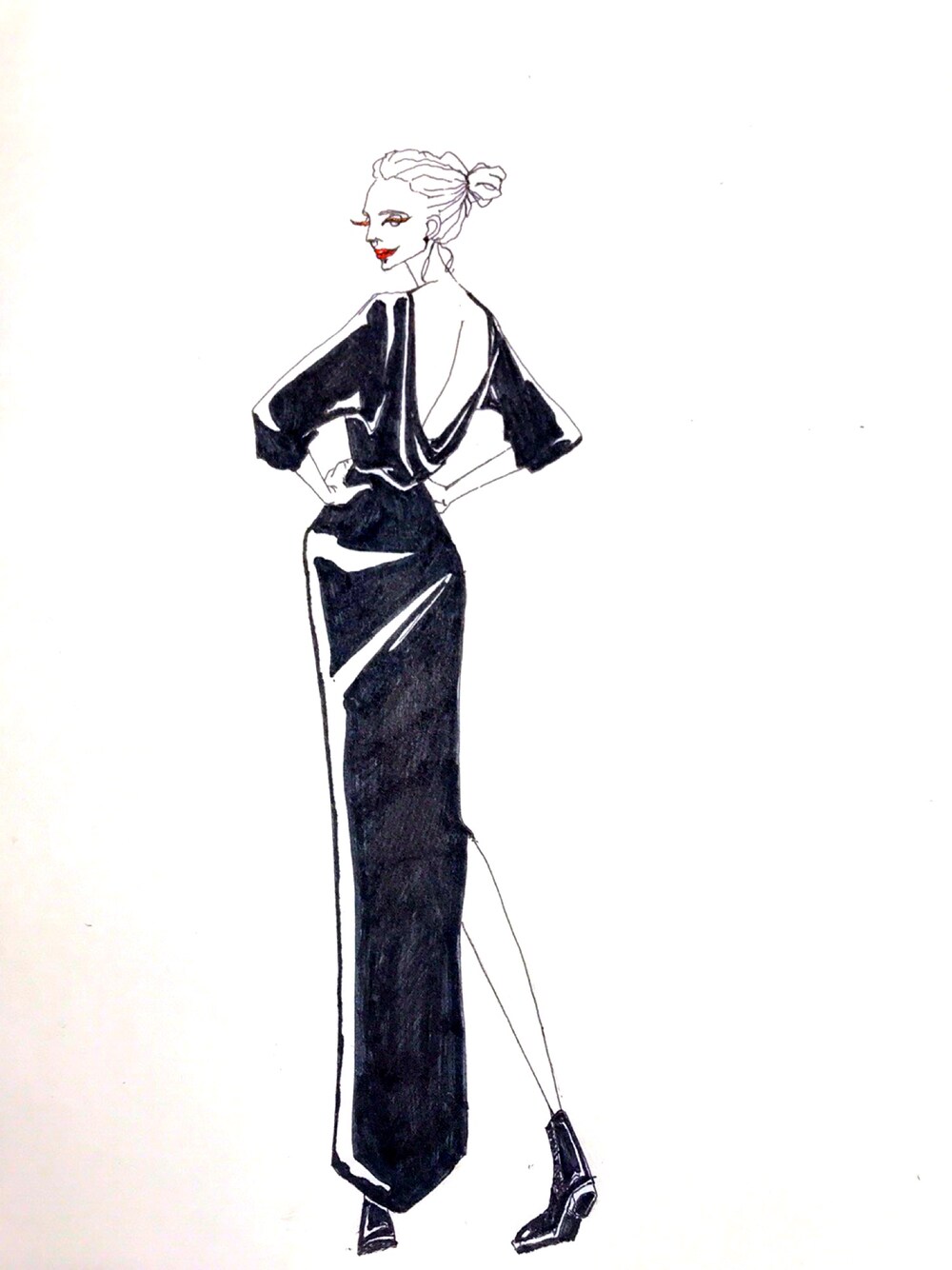 背中あきワンピース 見せるところを絞る 色気際立つ 黒は女を美しく見せる でも足元で抜いてみた ヌケ感大切