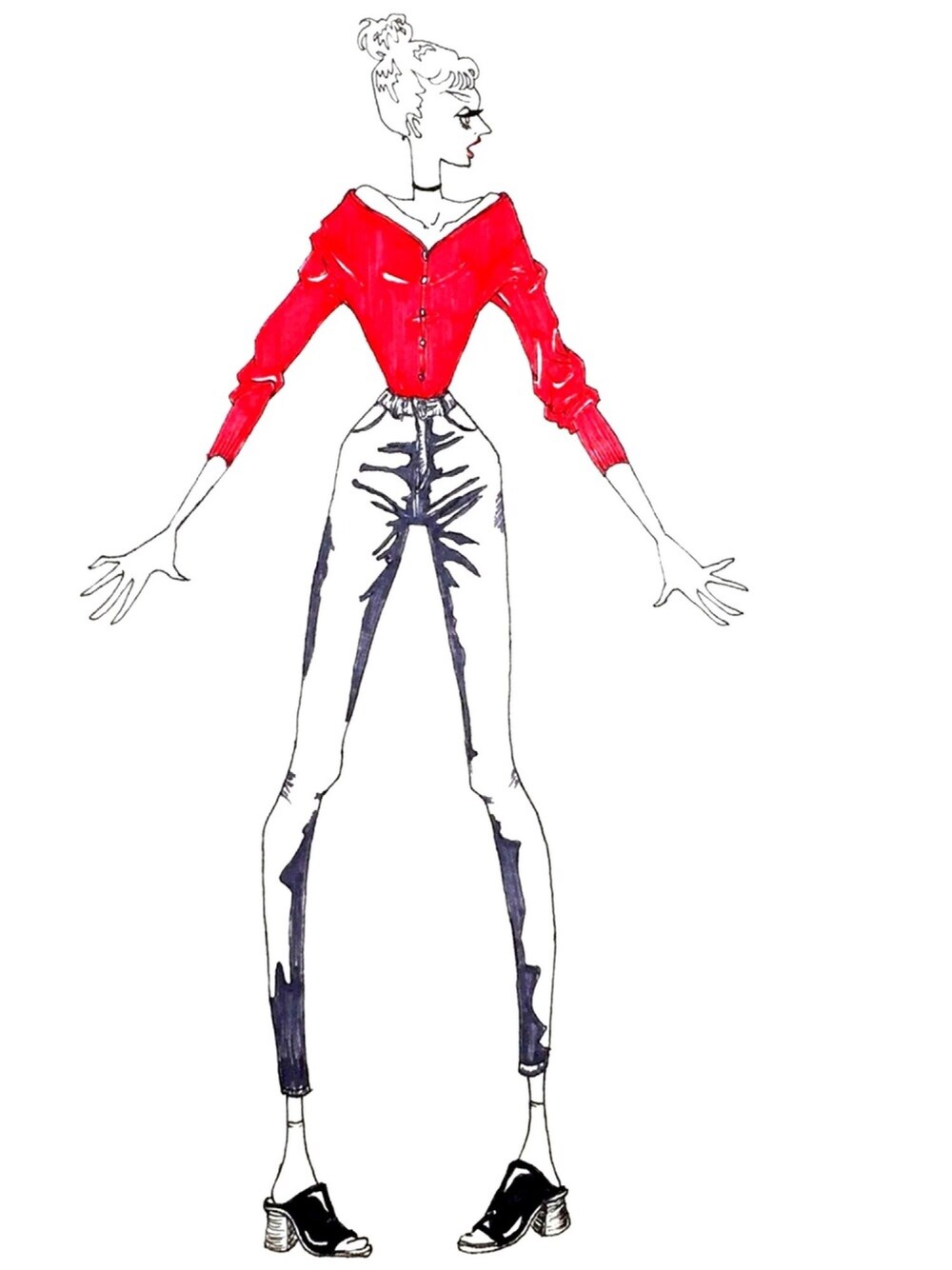 vネックカーディガンを肩抜きSTYLE チョーカーで引き締め ペールブルー爽やか〜 足元はサボさん。