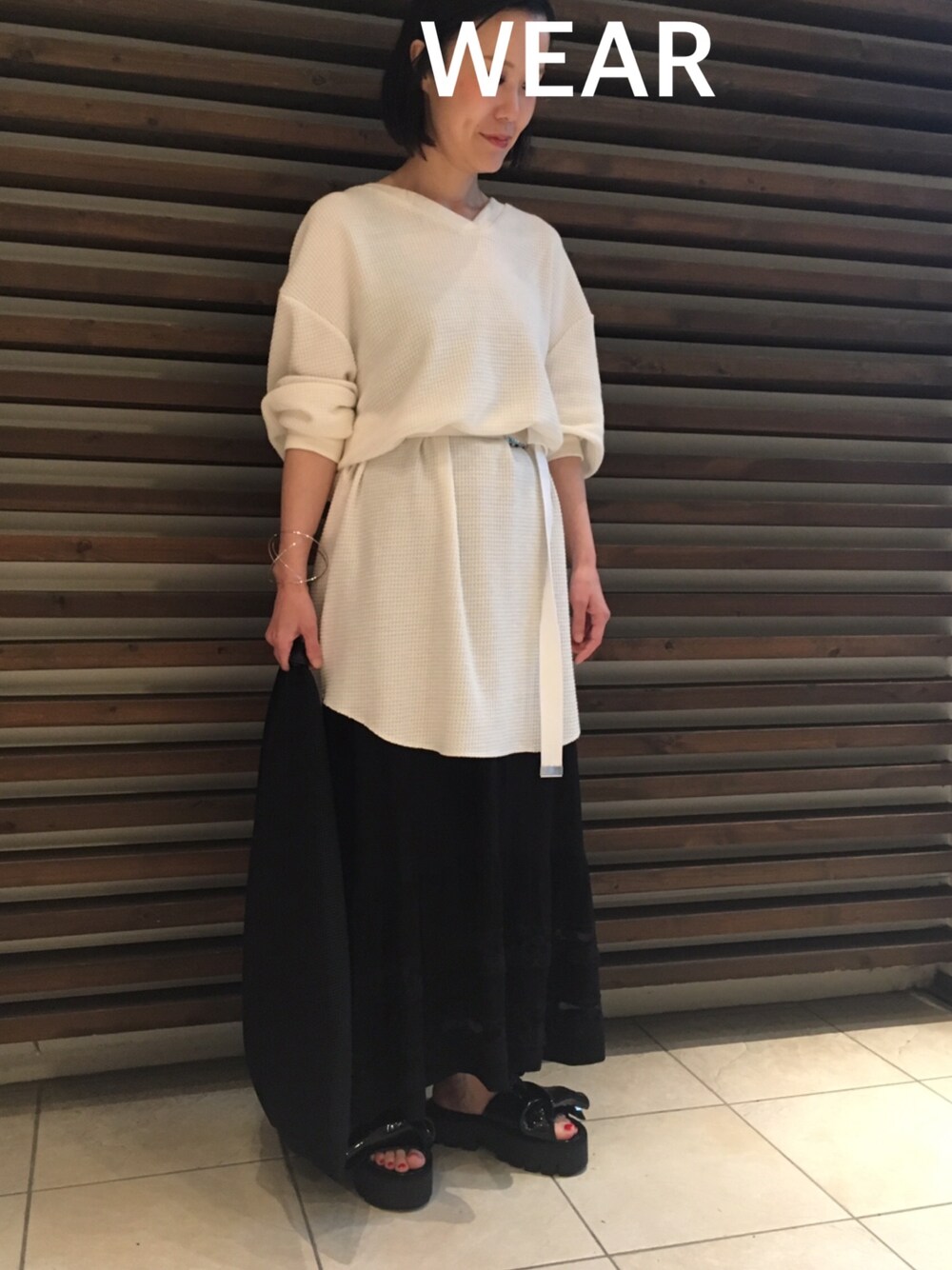 白×黒 ワンピース:ZARA ガチャベルト:WEGO
